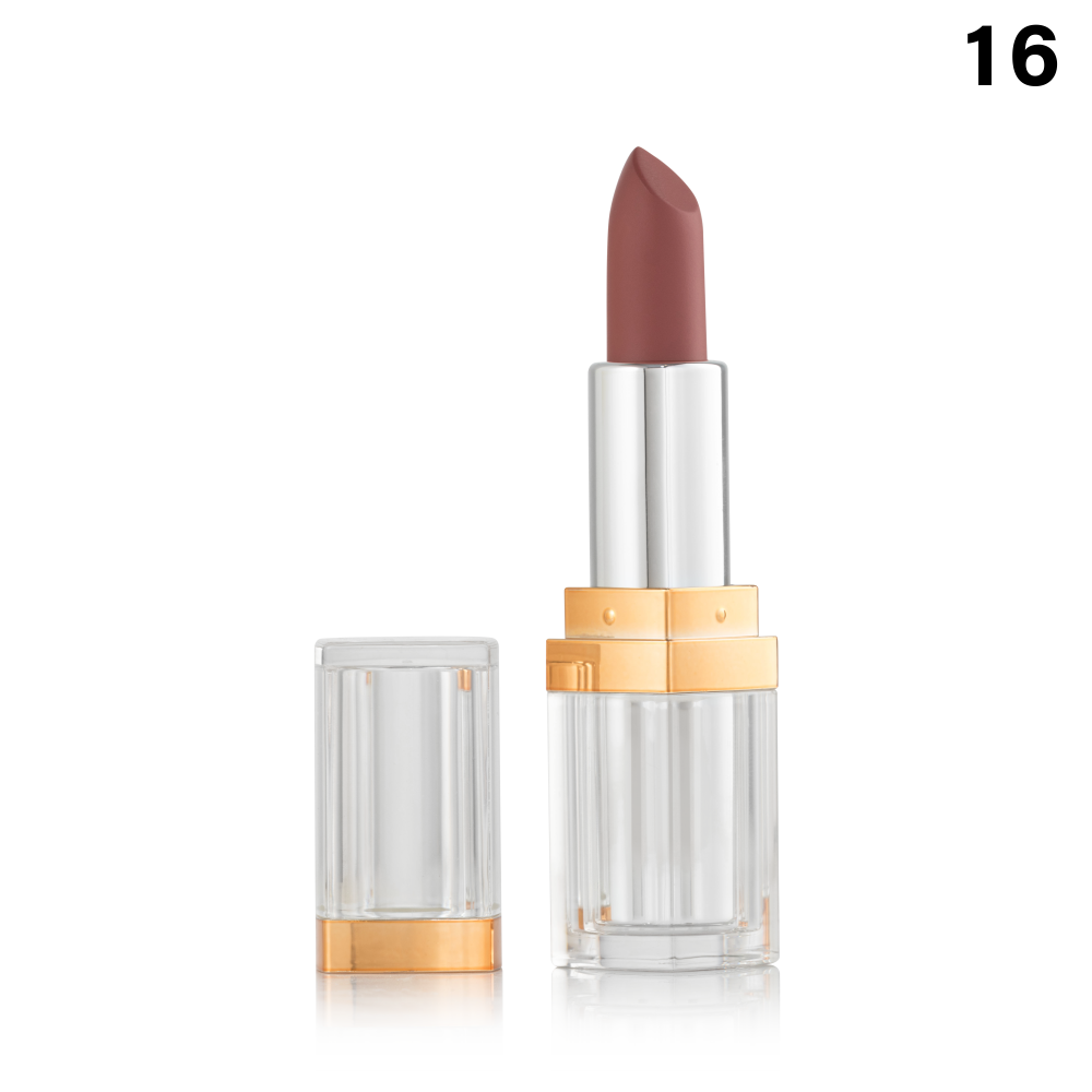 أحمر الشفاه الكريمي المات. يمنحكِ تغطية كاملة ولمسة نهائية مخملية، مع إحساس ناعم دون جفاف. مثالي للاستخدام اليومي أو المناسبات الخاصة.