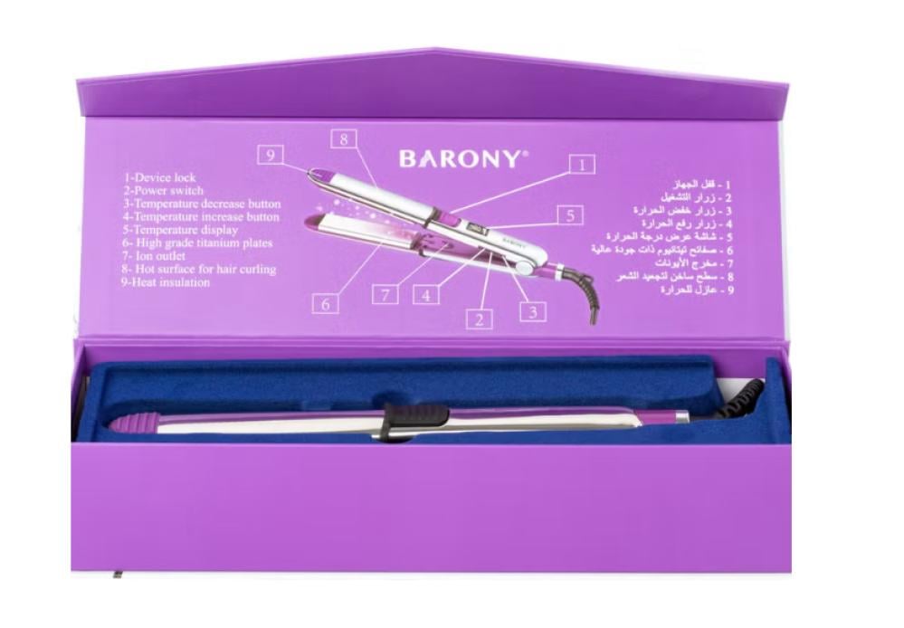 مكواة فرد الشعر الاحترافية باللون الأرجواني/الفضي